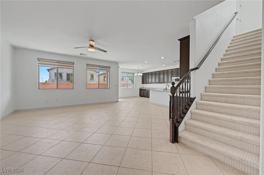 $2,540 Total Periodic Rent ($2,495 base rent + $45 trash & sewer). Beautiful 4-bedroom, 3-bath home in a gated community near Tropicana & Hualapai. Spacious kitchen with stainless steel appliances, granite countertops, large island, pantry, built-in microwave, convection oven, abundant cabinetry, recessed lighting, and tile flooring. Berber carpet on stairs and second floor. All windows with zebra shutters and screen doors. Primary bedroom with private balcony, ceiling fan, and large walk-in closet. Primary bath with double sinks, separate soaking tub and shower, and huge walk-in closet. The downstairs room has a built-in bookshelf. Storage along staircase, laundry room with new washer and dryer, low-maintenance backyard with covered patio and brick flooring, two energy-efficient thermostats, garage with built-in cabinets prewired for water softener. Landscaping maintenance is included. Conveniently near parks, shopping, restaurants, hospital, and schools.