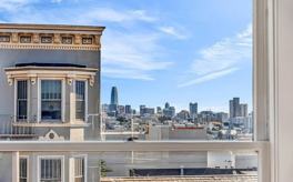 This bright top-floor 1BD/1BA Edwardian condo is part of a boutique 6-unit bldg and offers sweeping city skyline views in the heart of Presidio Hts. Combining period character w/thoughtful updates, the home features open living spaces, flexible functionality, and a location close to Laurel Village, cafes, and the Presidio's miles of trails & open space. The LR is framed by large windows that bring in abundant natural light and connects directly to the kit, which offers ample cabinetry, practical counter space, and a breakfast bar. Just beyond, a slightly raised DR adds definition while remaining open to the main living areas. The condo includes a private BR at the front and a versatile home office or guest room that opens to a rear balcony w/stairs to the shared yard. A full BA w/ shower-over-tub is conveniently located nearby. Fresh paint, wood floors, and new carpet run throughout. Bldg amenities include low HOA dues, shared basement laundry, secure access, and private storage. Ideally located in Laurel Hts, this condo is just steps from Sacramento St & Laurel Village shopping & dining, the Presidio, Trader Joe's, the JCC gym & pool, and multiple Muni lines. 333 Presidio #5 offers a blend of charm, functionality, value & everyday convenience in one of SF's most desirable areas.