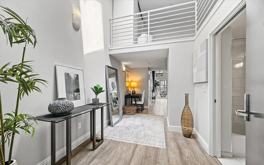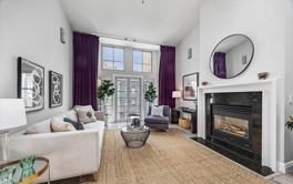 Located in vibrant Lower Nob Hill, this striking one-bed, two-bath loft condo offers a blend of modern sophistication and exceptional value. The expansive open-concept living/dining area is framed by a dramatic wall of French doors, skylights and soaring windows, bathing the space in natural light to create an airy ambiance. A sleek fireplace adds warmth to this refined urban retreat. The kitchen features granite counters, stainless appliances, and generous cabinet space. A full bath and laundry closet complete the main level. Ascend to the mezzanine bedroom, where skylights invite the morning sun and a private balcony offers a tranquil escape. The ensuite second bath enhances privacy and comfort. Residents enjoy access to a spacious common-area patio, an inviting venue for weekend BBQs and social gatherings. Additional amenities include one onsite parking, storage cage, Webpass internet, and Swiftlane video entry system. With a downtown location steps from shopping, restaurants, and cultural landmarks, this condo offers easy access to Civic Center, Hayes Valley, Union Square, Market St, Van Ness/101, MUNI, and BART. Whether you're seeking a stylish pied-a-terre, or full-time residence, this home delivers a balance of comfort, convenience, and cosmopolitan flair.