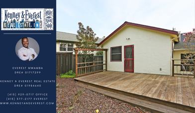 Two corner bedrooms provide privacy, with a bathroom featuring a glass shower between them. Attached garage includes extra storage and a loft. Located on Alta Vista Avenue near East Blithedale, close to Boyle Park, shopping, dining, and easy access to Highways 101 and 131.