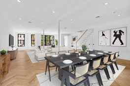 Massive 30 Ft. wide townhouse on one of the most desirable tree-lined streets in Crown Heights. This spectacular home is over 3,000 square feet and sits just a few blocks from Prospect Park and the Brooklyn Botanical Garden. Behind the beautiful white brick facade and private forecourt is a stoop entry featuring custom iron entry doors leading to an expansive parlor. This level is outfitted with herringbone oak floors, custom cut moldings, Pella windows & sliding door systems, and a powder room. 30’ of width and a south-facing front exposure flood the home with natural light. The luxurious, eat-in kitchen features Bertazzoni appliances and high-end finishes such as custom kitchen cabinets, a walk-in pantry, a coffee bar with honed granite countertops, and matte black hardware by Baldwin & Emtek. A charming terrace is also located on this level, completing the perfect entertainment and living floor. The floor above features the primary bedroom in the rear, with a spacious walk-in closet, and the primary bathroom with Italian white Carrara marble tile. Three secondary bedrooms sit in the front with a shared hallway bathroom. Natural sunlight floods each room and gracious ceiling heights evoke luxury and grandeur in every bedroom. A laundry closet with a washer and dryer is also conveniently located on this floor. The top floor features a finished roof deck with an indoor bar with honed granite countertops, a beverage fridge, and a full bathroom. Plumbing fixtures throughout the home are Kohler, Delta, and Toto. The entire property is also outfitted with brand new central HVAC, smart home integration, security camera wiring, nest thermostats & doorbell camera. 1247 Union Street is only steps from Prospect Park, historic Grand Army Plaza, and the Nostrand and Franklin Avenue subway stations, offering convenient access to all of Brooklyn and Manhattan. Additionally, the boutique shops, cafes, and restaurants of Nostrand Ave & Franklin Ave are within very close proximity. This unicorn of a home offers unparalleled luxury and convenience in prime Crown Heights.