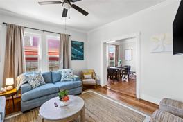 Prime location and a Stunning Home for coastal living . Experience the ultimate luxurious coastal lifestyle in this beautifully updated single family home, perfectly situated one block from Seawall. Enjoy breathtaking Gulf and water views from this desirable property from upstairs porch and walking distance to Pleasure Pier, Joe's Crab Shack, Nicks and other Galveston's top-rated restaurants This stunning home boasts 1,979 sqft of living space . Live here or use it as a vacation rental as it comes fully furnished . No Restrictions. No HOA. The property features original hardwood floors, new roof, updated impact-resistant windows, and modernized kitchen and bathrooms with PEX plumbing and stainless steel appliances Professionally designed curated and crafted with a thoughtful mix of oak, pine, jute, and bamboo elements, perfectly capturing the essence of coastal living. There is an extra bedroom next to primary bedroom downstairs which can be used as an office or kids play room