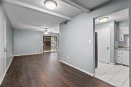 Inside, you'll find new stainless steel appliances, updated countertops, flooring, and modern fixtures, along with an open layout that flows from the living room into the kitchen, making the space feel bright and functional.
