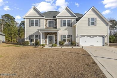 $1500 OFF the 1st Month's Rent!! Welcome home to this stunning 4-bedroom, 2.5-bath residence offering over 3,000 heated square feet on a desirable cul-de-sac homesite in Onslow Bay. Step inside to a dramatic two-story foyer offering a formal dining room, and versatile flex space perfect for a home office or playroom. The chef's kitchen boasts a gas range, granite countertops, oversized kitchen island, and opens seamlessly to the keepers room and main living area that includes cozy electric fireplaces, ideal for relaxing evenings. Upstairs, enjoy the convenience of a large laundry room and an expansive grand ensuite complete with a double vanity, huge walk-in closet, large soaking tub, and walk-in ceramic tile shower. Outdoor living shines with a covered rear patio overlooking fruit trees and bushes, while community amenities include a pool and clubhouse. Pet-friendly home allowing 2 pets with owner approval,$150 non-refundable pet fee per pet, no bully breeds. Located just minutes to Piney Green Gate, this home blends space, comfort, and convenience beautifully.