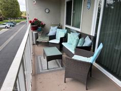 A charming lower Castilla unit located in a very popular area of Laguna Woods Village. Wonderful view from living room and dining areas and balcony. Unit is exceptionally clean with tile flooring in kitchen, raised counter tops, all kitchen cabinets newly re-faced. Owner(s) have added beautiful comfortable furnishings. There is an inside stackable washer/dryer. Property has mirrored wardrobe doors, wood flooring in entry and dining areas, carpet in living room and bedrooms. Newer AC/Heat units in both bedrooms and heat pump in dining room area. Outside balcony for your evening enjoyment. Owner's have created a very comfortable atmosphere making it feel "just like home". This is a 55+ Senior Retirement Community that offers a multitude of amenities for your everyday enjoyment. Golf, pools, tennis courts, pickle ball,recreation rooms, Club 19 Restaurant, wood shop, ceramics and over 250 Clubs and Organizations. You will enjoy living in this beautiful Laguna Woods Village Community! Carport No. 623 Space #2