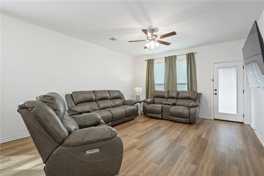 This beautiful, like-new home offers an efficient use of space without sacrificing functionality or design. Spacious 3 bedrooms PLUS an office/flex room. Thoughtfully designed with modern fixtures and stunning vinyl wood-plank flooring throughout the main living areas. The open-concept layout features a spacious living area that flows seamlessly into the kitchen, complete with an island offering bar-stool seating and ample cabinet storage, granite counters, farmhouse sink, pantry, and stainless steel appliances. The secluded primary suite includes double vanities, walk in shower, linen closet and spacious walk in closet. Back yard features a covered patio and privacy fenced.