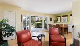 This mid-century single-level cottage is ideally situated within the tranquil natural setting of Lower Bluebird Canyon, yet close to all the beach town activities Laguna Beach has to offer. Enjoy panoramic ocean views from the spacious hillside terrace, perfect for year-round outdoor living, dining and entertaining, all while watching beautiful sunsets, moonrises and the starry night skies. The light-filled living room features a wood burning fireplace, custom built-in cabinets and two sets of glass doors that fully open to the front and back patios, bringing the cool ocean breezes indoors.