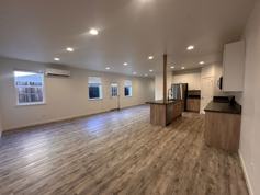 Inside, the home features durable vinyl plank flooring throughout, an open-concept main level, and a stylish kitchen with stainless steel appliances, quartz countertops, and modern cabinetry. The layout flows seamlessly from the kitchen to the dining area and living space, making it ideal for both everyday living and entertaining.