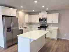 As you walk into your home, you will immediatley notice the modern front door that is all glass! That will lead you to the open concept living room that has lots of natural lighting. The living room leads to you to the kitchen. This goregous kitchen is equipped with all stainless steel appliances, an island/ eating bar and a generous amount of cabinets. The main living area also has access to the garage and a half bathroom.