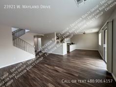 This lovely Buckeye home is freshly painted in neutral tones and has brand new flooring throughout. You'll find a bedroom and full bathroom downstairs and a HUGE loft along with the other 3 bedrooms (including the primary) are upstairs. The laundry room is also upstairs. Great layout, kitchen with breakfast bar seating and room for a dining table, the kitchen also has a walk in pantry. Large backyard with gravel for low maintenance. This home adjacent to the community park and the community is full of walking paths, playgrounds and green space.