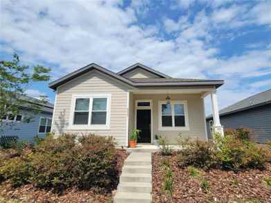 This stunning 2 Bedroom, 2 Baths with Bonus room in Finley Woods only 10 minutes to UF/Shands/VA and 6 minutes to Celebration Point. Practically new wide open floor plan with 'wood look tile' in living areas, 10' ceilings. Kitchen with large island, granite & Maple cabinets, stainless steel appliances. An amazing array of green features & construction to minimize your electric bill including Tesla solar panels, Gas tankless water heater, low-e windows, ceiling fans in all rooms and spider insulation for low electric bills. Primary suite is spacious, offers a long granite vanity with two deep sinks and a huge walk-in-closet and walk-in shower. Attached large 2-Car garage. No yard maintenance.