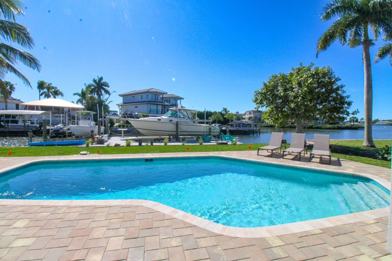 Private heated pool on the waterway with outdoor shower