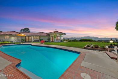 Private flag-lot home with breathtaking 180-degree mountain views, a sparkling pool with multiple patio areas. Enjoy stunning red and amber sunsets from the pool and outdoor viewing spaces.