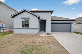 Welcome to 161 Flexus Ln, where modern design meets comfortable everyday living in Liberty Hill. This well maintained single story home offers strong curb appeal with a sleek exterior and inviting entry. Inside, the open concept layout creates a bright and functional space ideal for both relaxing and entertaining. The kitchen features white shaker cabinetry, subway tile backsplash, and a large center island with ample workspace and seating. The spacious primary suite offers a stylish bathroom with double vanity sinks and distinctive designer finishes. Additional bedrooms provide flexibility for guests, office space, or hobbies. Enjoy outdoor living on the covered back deck overlooking a private fenced yard with room for pets or play. Conveniently located near local schools, shopping, and dining, this home offers a balance of style and practicality. Pets ok w/ owner approval.