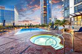 MID- & LONG-TERM FURNISHED RENTAL - Electra Building 2BR with Views, Pool, Sauna & Spa Enjoy an elevated extended stay in the iconic Electra, San Diego's tallest residential tower, offering full-service amenities and custom elegant decor throughout. This beautifully appointed two-bedroom residence features sweeping bay and water views and a prime location just steps from the waterfront, Little Italy, and downtown dining and entertainment. The light-filled open living area flows seamlessly into a fully stocked kitchen, creating a comfortable space to cook, dine, and unwind while enjoying the views. Sliding glass doors open to a private balcony with lounge seating, ideal for morning coffee or evening relaxation. The primary bedroom serves as a serene retreat with a walk-in closet, en-suite full bathroom with soaking tub, dedicated work desk, and smart TV. The second bedroom offers flexible accommodations with one double bed and one twin bed, making it well suited for guests, family members, or shared mid-term living. In-unit washer and dryer provide everyday convenience. Residents enjoy Electra's exceptional amenities including a lap pool, jacuzzi, fitness center, sauna, BBQ area, and beautifully landscaped grounds that feel like a private urban oasis. One assigned parking space with EV charging at the stall is included. Ideal for professionals, relocations, or extended stays seeking comfort, convenience, and downtown sophistication. Sleeping setup accommodates up to five guests. Rates vary by season and length of stay.