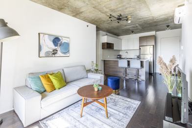 Nestled in the heart of Griffintown and surrounded by parks and green spaces, this superb 2-bedroom condo with beautiful natural light, stands out. Balcony-style terrace overlooking the canal and a view of a green landscape. Locker. Garage. The building: Gym, Indoor heated swimming pool, Courtyard with BBQ. Completely furnished roof terrace with BBQ, Panoramic view of downtown Montreal and the magnificent Lachine Canal, lounge, + Long rooftop pool. Everything you could need is within walking distance and easily accessible.
