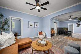 An absolute gem remodeled from top to bottom and completely move-in ready! This home features a brand-new furnace, new flooring throughout, a new gas fireplace, and all-new appliances including dishwasher, stove, and microwave. The fully updated bathroom showcases modern finishes and thoughtful design. The bright, open living space is warm and inviting, centered around the stunning gas fireplace perfect for cozy evenings or entertaining guests. Fresh interior and exterior paint, new cabinets, and stylish contemporary details complete the transformation. Located just a few blocks from the vibrant Perry District, you'll enjoy easy access to The Meeting House Cafe, local shops, restaurants, and the beloved Thursday farmer's market. Experience the perfect blend of convenience, community, and charm in one of the city's most desirable neighborhoods. No garage, but there is a cement slab for parking or car storage.