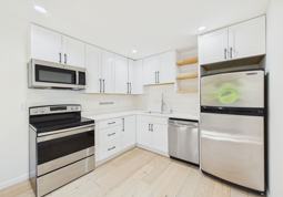 The bright, open floor plan seamlessly connects the living room, dining area, and remodeled kitchen, all oriented toward the deck. The home features two generous bedrooms with ample closet space, one full bathroom, and hardwood floors throughout. Both the kitchen and bathroom have been tastefully remodeled, creating a clean, modern feel.