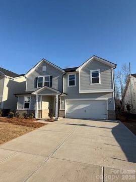 Designed for modern living, this brand-new construction home offers a fresh start in a peaceful Indian Trail setting. Never lived in, the home features 3 bedrooms, 2.5 baths, and a flexible floor plan that balances open living with thoughtfully defined spaces. The foyer, kitchen, and dining area are finished with luxury vinyl plank flooring, creating a durable and stylish foundation for everyday living. The kitchen anchors the main level with granite countertops and a spacious center island, seamlessly connecting to the dining and living areas. The living room and main-level office feature carpet, providing a comfortable and quiet environment ideal for relaxing or working from home. Upstairs, a spacious loft offers additional living space, along with a convenient laundry room and three bedrooms. Soft carpeting throughout the upper level adds warmth, while the staircase with iron and wood handrails provides an elegant architectural touch. Outside, a covered patio overlooks a tree-lined backdrop, offering privacy and a calm space to unwind. With modern finishes throughout and the benefit of being completely new, this home is ready for its first residents.