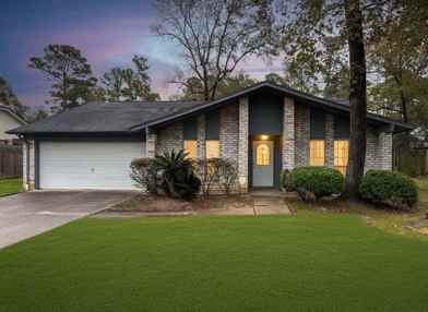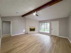 Beautifully updated one-story brick home on a spacious, tree-shaded lot. Inside, enjoy fresh paint, new flooring, and an open-concept layout with vaulted ceilings, an exposed beam, and a cozy brick fireplace. The home offers 3 bedrooms and 2 full baths, including a primary suite with a walk-in closet and built-in shelving. A formal dining room and large backyard make entertaining easy. French drains, gutters, and access to a community pool and tennis courts add extra convenience. Move-in ready now. Pets considered case-by-case.