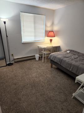 The room comes furnished and includes closet space. Shared access to the kitchen, bathroom, and living areas. Washer and dryer are available in the home. Utilities and high-speed Wi-Fi are included. One assigned off-street parking space is included and located directly in front of the premises.
