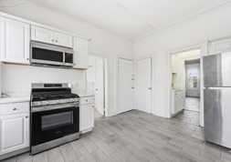Exceptionally spacious junior one-bedroom studio offering refined living with rich wood flooring throughout and a thoughtfully designed alcove ideal for a private sleeping area! Elegant details include a decorative fireplace, classic crown molding, and ceiling fans that enhance both comfort and charm. The beautifully appointed kitchen is flooded with natural light and features stainless steel appliances, a gas range stove, and a cozy breakfast nook—perfect for morning coffee or casual dining. Great views of Journal Square from the 2nd floor windows! Ideally located just half a block from the Hudson-Bergen Light Rail for effortless commuting, and close distance to beloved local dining and nightlife destinations such as O’Leary’s, Light Rail Café, and 902 Brewery. Book your appointment today! (Sorry, no pets).
