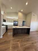 Interior: Open-concept floor plan with vaulted ceilings and a cozy gas fireplace.
