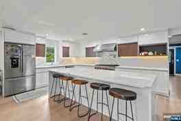 Prepare to be wowed by this stunning 6-bedroom residence in Rutherford, perfectly situated to blend modern luxury with a resort-style retreat. This home has been transformed with a completely renovated first floor that exudes sophistication. Step inside to find beautiful new hardwood floors sweeping through the open-concept living space. The centerpiece is a chef’s kitchen featuring custom cabinetry and top-of-the-line stainless steel appliances, including a professional Wolf stove and oven. Gather in the living area around the beautiful fireplace, framed by a striking custom accent wall, or refresh in the stylishly updated powder room. The luxury extends to the upper levels, offering six spacious bedrooms, including a primary suite with a steam shower and Jacuzzi tub. The finished basement adds incredible value with a home theater and surround sound for movie nights. Outside, your private oasis awaits. The backyard is an entertainer's dream, featuring a heated in-ground pool, patio, and bar area designed for summer enjoyment. Located just minutes from the Rutherford train station and bus lines to NYC, this home offers the perfect balance of suburban tranquility and commuter convenience.