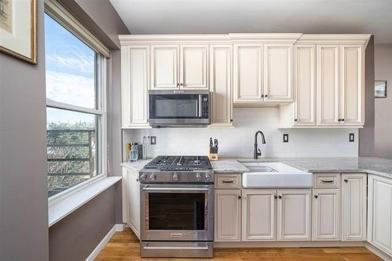 Sunny and bright one bedroom on uptown Park Avenue. Spacious renovated kitchen with granite countertops/breakfast bar, subway tile backsplash, numerous cabinets, and stainless Kitchen Aid appliances, including French door refrigerator and separate wine fridge. Living area has a skylight and room for a dining table. Generous-sized bedroom and custom closets. Renovated bathroom. Views of NYC skyline. Hardwood floors and high ceilings throughout. Shared common yard; basement has shared washer/dryer. Moments to dining, shopping, Trader Joe's, parks, NYC bus and rental parking.