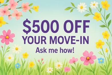 Spring savings start now—move in by March 2nd and get $500 off rent.