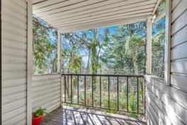 The residence boasts two well-appointed bedrooms, each offering generous closet space and large windows that provide picturesque views of the surrounding trees. The primary suite is a tranquil retreat, complete with an ensuite bathroom. Additional amenities include a versatile laundry area with up-to-date appliances and a charming balcony, ideal for enjoying morning coffee or evening relaxation. Located in a peaceful community, this property combines the tranquility of nature with easy access to local amenities, making it an ideal home for those seeking a balanced lifestyle.