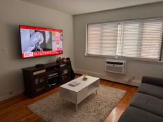 This contemporary sun-filled apartment includes one spacious bedroom with two double closets, living room, kitchen, full bathroom, and a huge foyer/hall with a double closet and a separate pantry. Part of the hall can be easily converted into a dining room and/or home office.