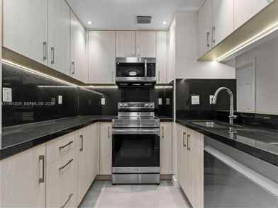 Located in the heart of West Kendall, this second-floor walk-up 2 bed/2 bath condo in Lakeside XI Condo is completely renovated and ready to move in. Everything has been updated from top to bottom. Features include modern matte porcelain tile floors, a freshly painted, bright interior, and a sleek kitchen with new cabinetry, undermount lighting, black granite countertops, and stainless steel appliances. Updated bathrooms showcase marbleized porcelain tile, stainless finishes, and new vanities. All new light fixtures, remote-controlled fans, and recessed lighting throughout. Custom roll-up shades in every room. In-unit washer and dryer. Enjoy a private, fully screened front porch in a quiet community with a pool. Meticulously maintained by owners who consistently care for the property and are attentive, responsible landlords. No Elevator. HOA Approval Required.