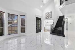 Welcome to this freshly updated two-story home offering 4 bedrooms, 3.5 baths, and zero carpet throughout, perfect for easy maintenance and a clean, modern feel. Upstairs, you'll enjoy a spa like retreat in the master bathroom with a beautiful sliding barn door and expansive shower and tub area. All bedrooms feature hardwood floors, while the primary bedroom closet impresses with extensive built-in shelving and drawers. The enclosed, covered back patio offers versatile use as a garden space, pet room, or creative flex area, leading out to a private backyard ideal for relaxation or play. Enjoy enhanced privacy with a gated driveway and electric gate fence, along with a covered carport and attached two-car garage. Additional parking has plenty of extra room for other vehicles. The bonus shed is located off the garage but enclosed within the electric gate. With thoughtful touches like an iron staircase railing, marble floors, and a cozy fireplace, there are too many details not to be missed. Located just minutes from Hwy 75, shopping, and restaurants, this home checks every box. Schedule your tour today because homes like this lease quickly! Refrigerator is included!