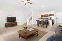 This one checks all the boxes. Freshly painted, professionally cleaned, and completely move-in ready, this 3 bed, 2.5 bath townhome with 1-car garage stands out with upgrades that matter including brand new flooring, new A/C, and a Tesla charger already installed. The paver driveway fits two cars plus the garage, with extra guest parking just steps away. Inside, the kitchen offers granite countertops, stainless steel appliances, pantry storage, and a layout that flows into the living space. Sliders open to a fully fenced private backyard, perfect for grilling or unwinding. Upstairs, the primary suite features a double vanity, soaking tub, and separate shower, plus second-floor laundry. Close to the pool, amenities, I-95, shopping, and dining. Pet friendly.