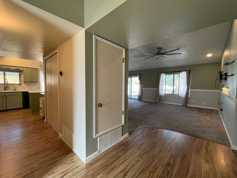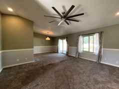 Welcome Home! This kitchen is a dream come true for any home cook, featuring black stainless steel appliances, an electric range, a built-in microwave, and a dishwasher. The kitchen also includes a pantry and an eat-in area for your convenience. The home is cooled by A/C with ceiling fans in each room, ensuring your comfort during the warmer months. Attached to the primary bedroom is a walk in closet. The en suite primary bathroom has dual sink vanities and a walk in shower. Laundry is made easy with the an unwarranted washer and dryer located in the seperate laundry room. The home also includes a 2-car garage, providing ample space for your vehicles or additional storage. The backyard is fully enclosed, offering privacy and a covered patio for your outdoor.