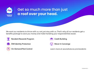Available for every property is a Resident Benefits Package (RBP) for our residents. This program handles pest control, air filter changes, identity protection, utility set up, and credit building for a minimal monthly fee of $40. More details upon application.