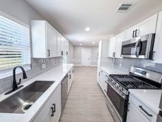 The kitchen provides ample cabinet and counter space with a practical layout that connects easily to the surrounding living and dining areas, making it convenient for daily use.