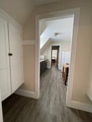 - Updated bathroom with granite-topped vanity, luxury plank vinyl flooring, and tub/shower combo