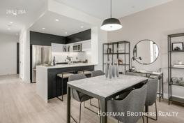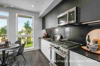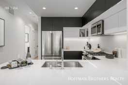 Step into this beautifully modern 2-bedroom apartment, thoughtfully designed with premium materials and stylish details throughout. The contemporary kitchen features matte black or white flat-panel cabinetry with soft-close hardware, quartz countertops and backsplash, a Kohler stainless steel undermount sink, and gourmet GE Cafe stainless steel appliances, including a French door refrigerator, gas range with convection oven, hidden-control dishwasher, and built-in microwave. Integrated LED under-cabinet lighting adds a warm, modern touch.