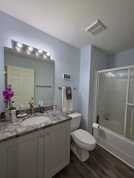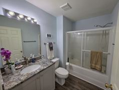 Located minutes to the airport, dining, shopping (Outlet Mall) and beach access. This first floor unit is ideal for all to enjoy. The screened in back porch is a perfect spot to enjoy morning coffee / tea. Steps away is access to a park grill. Inside you will enjoy open concept living with new LVP flooring throughout. The kitchen has been completely renovated with new cabinets, granite counters (with bar style seating) and new refrigerator, stove, microwave and dishwasher. Washer and Dryer are also provided inside the unit. The kitchen has complete view of the dining room and living room. Ideal for entertaining. The dining room table has seating for six. The living room boasts a 9' couch and 55" smart tv. The master bedroom has a large walk in closet, king size bed, dresser, chest and side tables. The large master bath has been partially renovated with new vanity and granite top. The 2nd bedroom is equipped with 2 twin beds and dresser and large closet. The 2nd bath has also been partially renovated with new vanity.+ The community pool is just a short walk away, while you enjoy the pond views along the way.