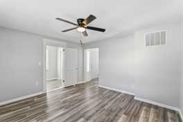 This updated 1 bedroom, 1 bathroom quadplex unit at 851 S Millwood offers a convenient central Wichita location. The living space has vinyl plank flooring running throughout the entire unit—easy to clean and perfect for low-maintenance living. It also features large windows for natural light and a ceiling fan for added comfort.