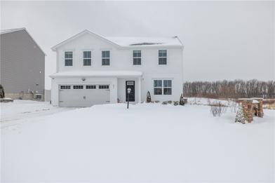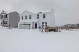 Available for rent is this nearly new, 2024-built two-story home located in the desirable Lehigh Ridge neighborhood of Henrietta. Former model home with maximum builder upgrades. Tucked into a quiet community setting while still just minutes from shopping, dining, parks, and convenient thruway access. Walking distance from Sherman Elementary School and a five minute drive from Rush-Henrietta Senior High School. This home offers a modern open-concept first floor, ideal for everyday living and entertaining. The bright white kitchen features quartz countertops, stainless steel appliances, and a pantry, flowing seamlessly into the dining and living areas. A powder room and a versatile office or flex space complete the main level. Upstairs, enjoy the convenience of second-floor laundry, 3 comfortable bedrooms with walk-in closets, and an owners suite complete with attached bath and walk-in closet. Walking trail and pond just beyond a spacious backyard. Additional highlights include a full basement, 2-car heated attached garage with electric vehicle charging outlet, security system with fire monitoring, tankless water heater, and energy-efficient newer construction throughout.