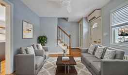 Renovated kitchen; stainless steel appliances; kitchen island; zoned mini split A/C; radiant heat; large unfinished basement; tandem parking for two cars; private outdoor space