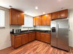 Two-bedroom, one-bathroom unit with two parking stalls, located on the downstairs level of the property. Features spacious bedrooms and ample storage. Appliances include an air fryer/convection oven, refrigerator, and cooktop. Shared washer and dryer with the upstairs unit. Tenant is responsible for utilities, owner provides yard service. Conveniently located near freeway access, grocery stores, and a variety of dining options! No smoking, Pets negotiable. Call or text Madison Kumai with Ivy K Realty for showings.