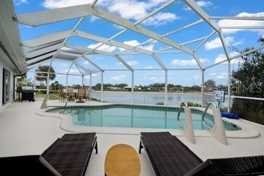 Screened-in pool with lake view