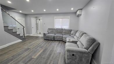Fully renovated in 2022, this spacious 4-bedroom, 2.5-bath semi-smart home is located in the desirable Hollis Hills neighborhood of Northeastern Queens. Featuring hardwood floors and recessed lighting throughout, smart light switches and appliances with programmable timers, baseboard heating, and energy-efficient ductless split systems in all rooms for air conditioning, this home offers modern comfort and convenience. The bright and open layout includes a sun filled living room, formal dining area, and an eat-in kitchen featuring high-end stainless steel appliances, quartz countertops, induction cooktop, oven, and dishwasher. Generously sized bedrooms offer ample closet space. The fully finished basement provides additional living space with a full bath, brand new washer and dryer, utility room, and abundant storage. Beautifully manicured oversized backyard and a two-car driveway ideal for parking and entertaining. Conveniently located near top-rated schools, library, shopping centers, major highways, public transportation, and express buses to Manhattan. Move-in ready.