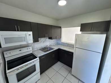 This 2-bedroom, 1-bathroom apartment offers a clean, modern vibe with new finishes and updated features throughout. Designed for comfort, safety, and easy living. Ceramic tile flooring throughout - Impact-resistant hurricane windows in all rooms - Modern renovated bathroom - Brand-new kitchen cabinets & new countertops - Glass top electric stove - Microwave & refrigerator included - Fully electric unit (no gas – safer & worry-free) -Electric water heater - Central A/C Assigned parking space included Guest parking available behind the building Conveniently located near major roads, shopping, dining, and daily essentials. Easy access and a high-demand rental area.