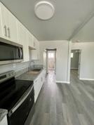 The kitchen comes fully equipped with a range, oven, refrigerator, dishwasher, and garbage disposal. Enjoy year-round comfort with a wall A/C unit. The bathroom features a sleek marblesque shower and linen cabinet, while a mirrored closet in the hallway provides convenient additional storage.