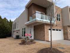 Gated Neighborhood! Modern luxury townhouse-style condo in the heart of Southwest Durham. Abundant natural light with soaring ceilings and windows floor to ceiling. Chef's kitchen with Miele stainless steel appliances, gas cooktop, waterfall quartz on the oversized kitchen island bar, custom cabinets boxed to the ceiling, large walk-in pantry. Open floorplan with combined dining/living area including gas fireplace and sliding patio door that leads to the deck and wooded views. Enclosed 1st floor office/flex room. Second floor boasts a luxurious primary suite with a spa like free standing tub, walk-in shower and closet, and private covered balcony. Additional bedroom complete with ensuite bath and private balcony. Large loft space which is perfect for a TV room, hangout, office. Community amenities include a clubhouse for socializing and entertaining with a kitchen, lounge area, and large table for dining or meetings. Two car garage w/storage.